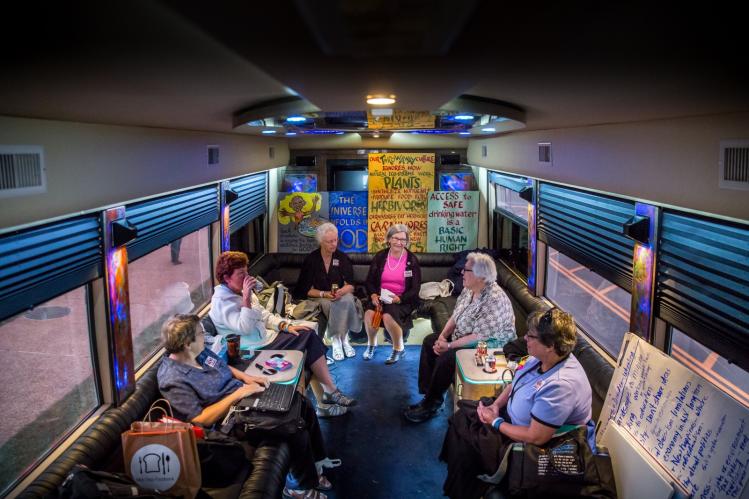 Sister Campbell appears with Nuns on the Bus campaign as it makes stop