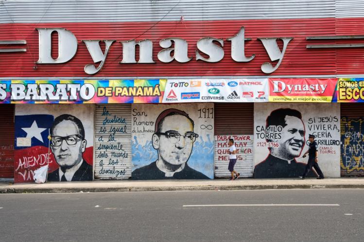 Murals of Salvador Allende, Oscar Romero, and Camilo Torres in Panama City (Hanohikirf / Alamy Stock Photo)